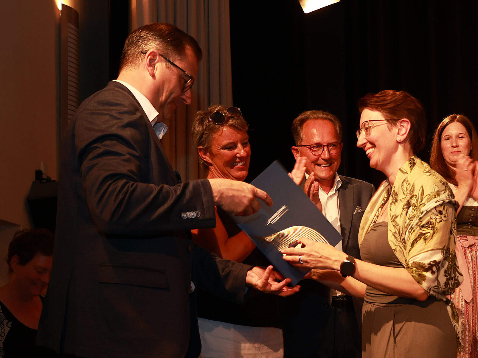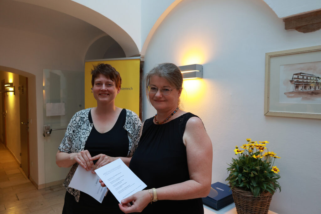Birgit Karoh, Brigitte Rummer-Bichler und Georgie Greimel-Daxböck, Absolvent Michael Süß sowie die Präsidentin des Chorverbands Österreich