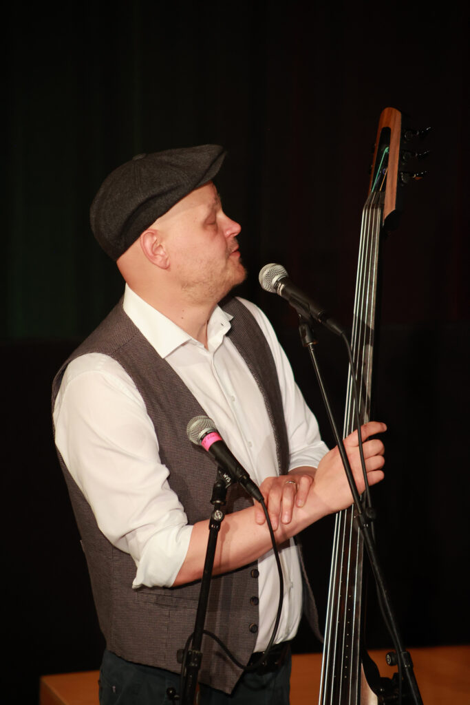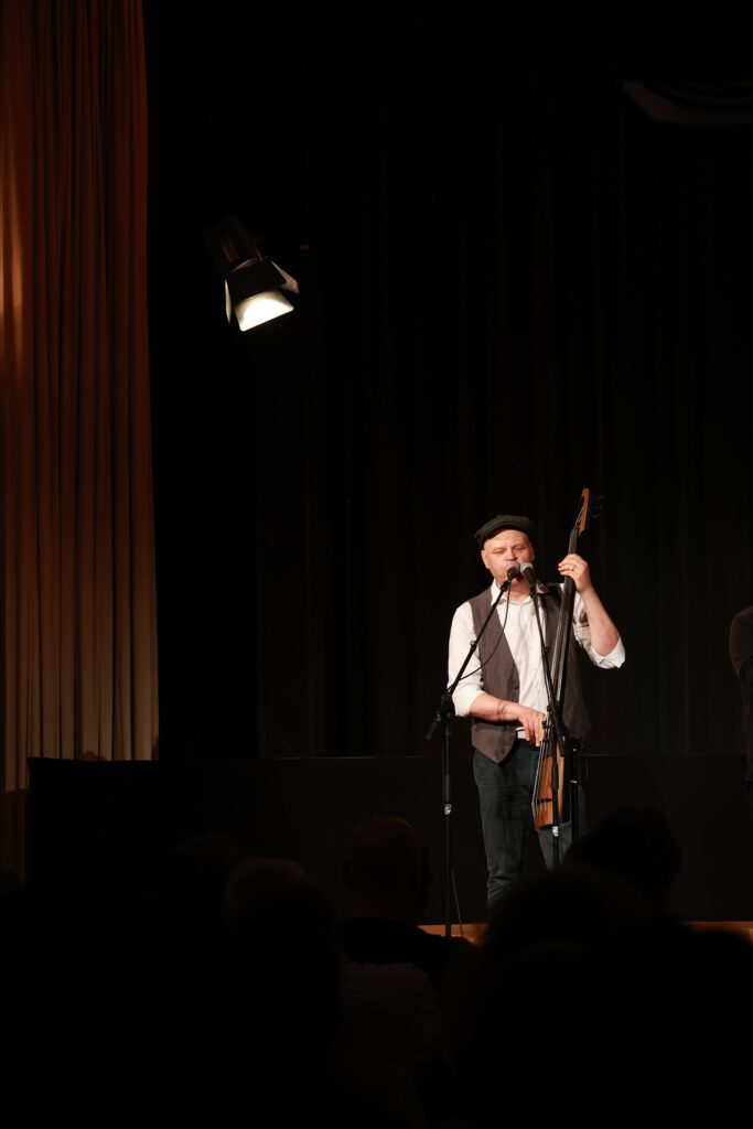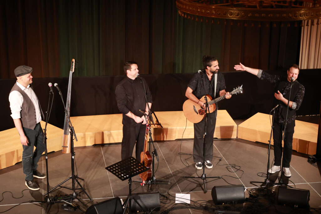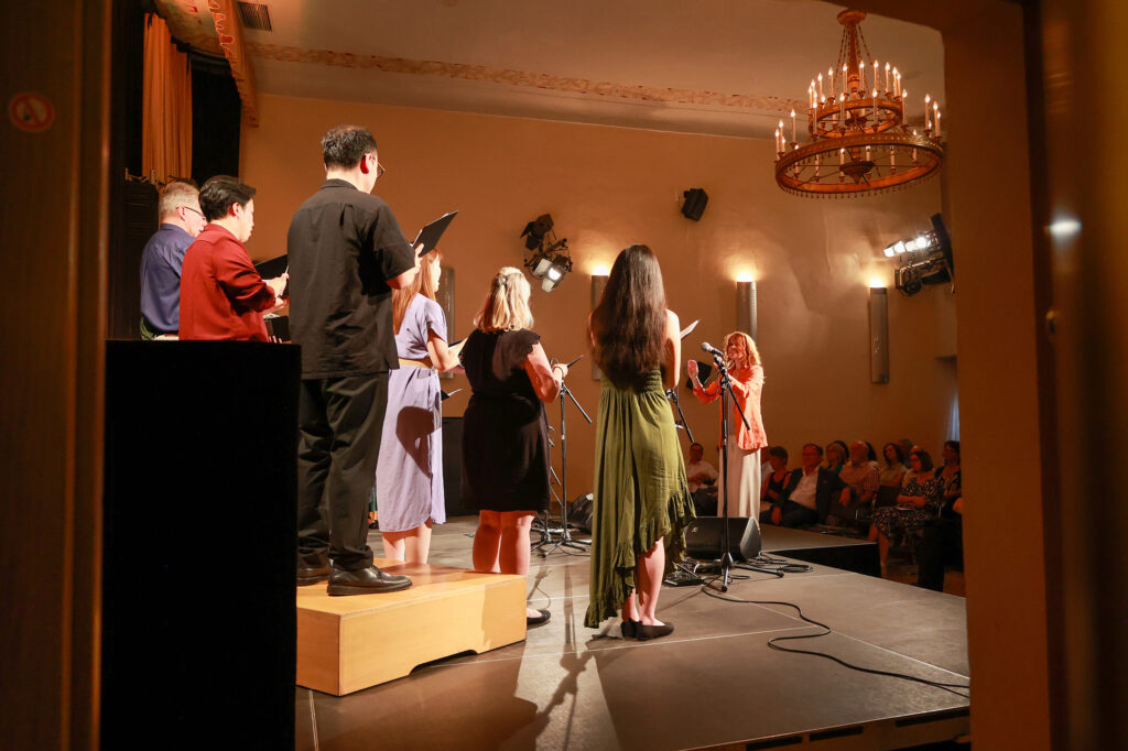 Zwei Absolventinnen und ein Absolvent von chor.leiten bravura dirigierten im Haus der Regionen nicht nur bei ihren Lehrproben, sondern auch im Rahmen des Abschlusskonzerts. Ihnen zur Seite stand ein Ensemble des Arnold Schoenberg Chores. Den künstlerischen Rahmen und gleichsam einen musikalischen Kontrapunkt stellte das Gastensemble Basbaritenori.