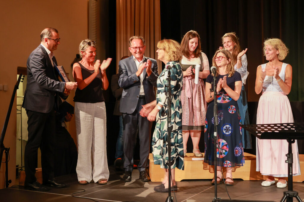Christina Müllner, Irmgard Diem, Barbara Röder, Lehrgangsleiterin Stefanie Weingartner, Lehrgangsleiter Erhard Mann, die Vertreter der Bildungs-