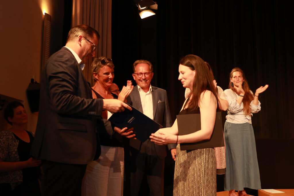 Andreas Gruber (Fachinspektor für Musik und Kreativität), Absolventin Ester Font-Bardolet, Johannes Hiemetsberger (Lehrgangsleiter),