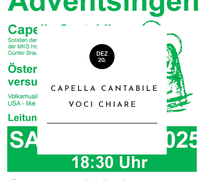 Der Chor Capella Cantabile lädt zum Adventsingen in die Gartenstadtkirche in Hollabrunn ein: