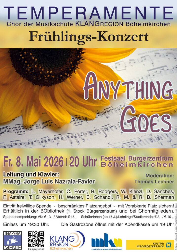 TEMPERAMENTE, der Erwachsenen-Chor der Musikschule KLANGregion Böheimkirchen, lädt zu seinem jährlichen Frühlings-Konzert.