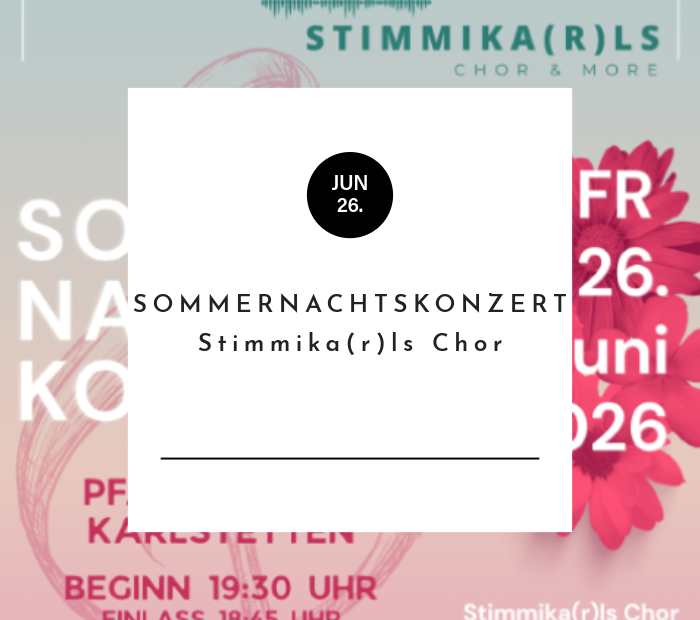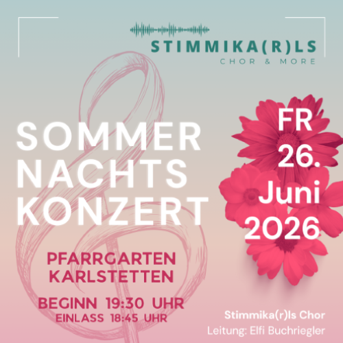 Die Stimmika(r)ls sind ein 2023 gegründeter, generationenübergreifender Frauenchor. Das Repertoire umfasst moderne und traditionelle Genres. Das erste Open Air Sommernachtskonzert des Chores  steht unter dem Motte  “Große Gefühle”. Mit dabei ist auch das Brass-Quartett “Fibrass”. Für sommerliche Verpflegung ist gesorgt.